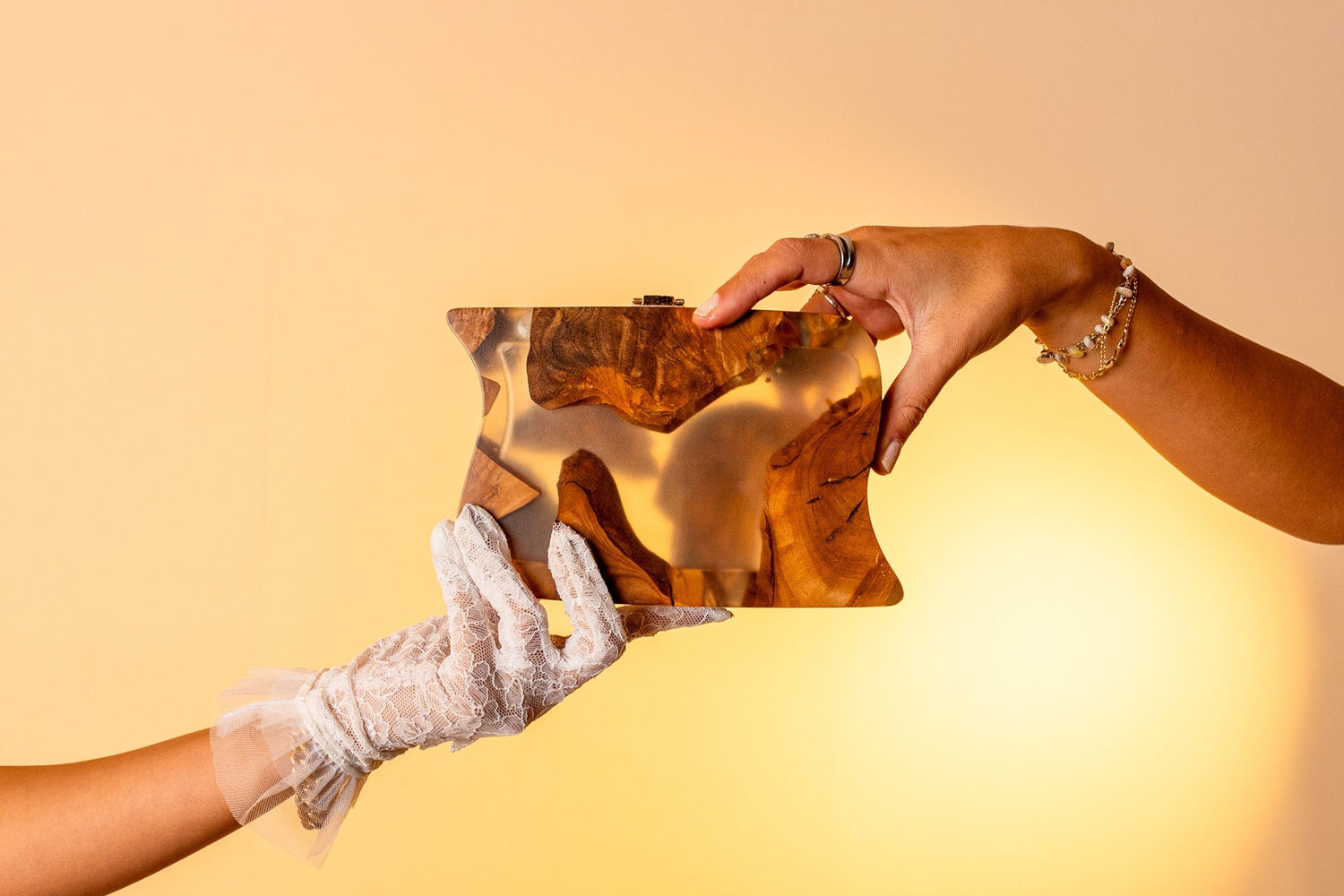 Each piece in Aura by J's first drop is a celebration of nature’s elegance and modern sophistication. Crafted from olive wood and resin, every bag reflects the essence of its name and carries a unique aura, designed for the woman who is as individual as the bag she carries.